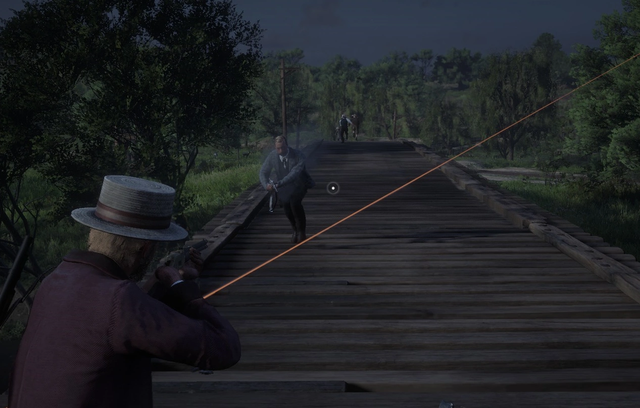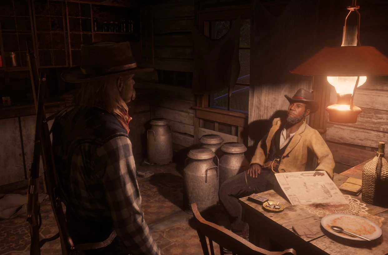 With the bounty hunters dead, the outlaws made their way north to Annesburg, where they met the gunslinger Boogie Norris as they interacted with the locals. Their brief respite in town was crashed by another wave of bounty hunters, resulting in another shootout. Arizona and Pete joined forces to kill Heulet B. Galusha, Freeman M. Morrin, Mervin P. McKinnie, Donaciano A. Gorely, Carlton K. Bakeman, Hic C. Falch, Hutchinson L. Dauson, Gorge Y. Trexler, Fones I. Corey, Marion G. Capps, Truman Y. Cockran, Wheeler F. Chodt, Cullen G. Dunnigan, Samuel F. Beerman, Olin E. Warthen, Felton J. La Selle, Clarance N. Houser, Mills I. Clunen, and Basil E. Burnes, after which they made their way north to the forested shack of Manito Glade to lay low.
