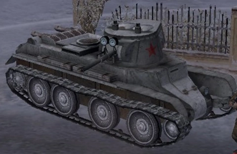 The BT-7 "Betka" was a Soviet light tank that was produced from 1935 to 1940, with 5,300 tanks being built. The BT-7 first saw action in the USSR's border war with Japan, and it would later see action against Finland during the Winter War and against the Axis Powers during World War II. The T-34 would replace the BT-7 in 1940.