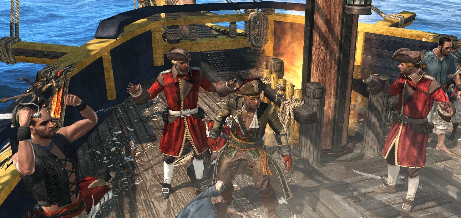 Captain Edward Kenway, having docked on Grand Cayman after destroying three British men o' war, proceeded to sail around the Cayman Islands and intended on exploring Cayman Sound as well. On encountering Cayman Sound, however, Kenway found that it was under guard by the frigate HMS Dove and two gunboats. Kenway led the Jackdaw into battle, easily destroying the two gunboats with a single broadside, before immobilizing and boarding the Dove. His pirates easily overran the British crew and forced them to surrender, clearing the way for Kenway to disembark and explore Cayman Sound.