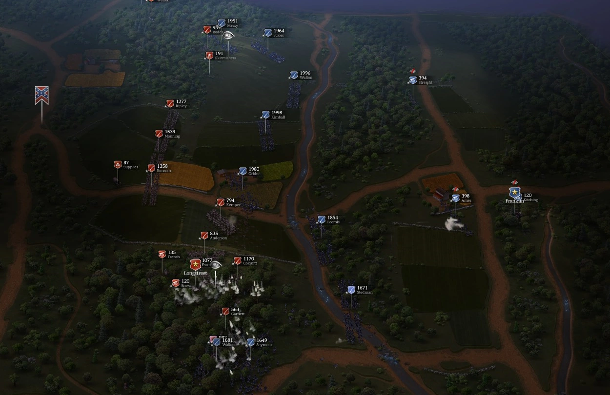 At Crampton's Gap to the south, a 500-man portion of Major-General Lafayette McLaws' Confederate States Army division faced 12,000 Federal troops. However, Franklin spent three hours deploying his forces, deploying Henry Warner Slocum on the right and William Farrar Smith on the left. They seized Crampton's Gap and took 400 prisoners, most of them late reinforcements from Brigadier-General Howell Cobb's brigade.