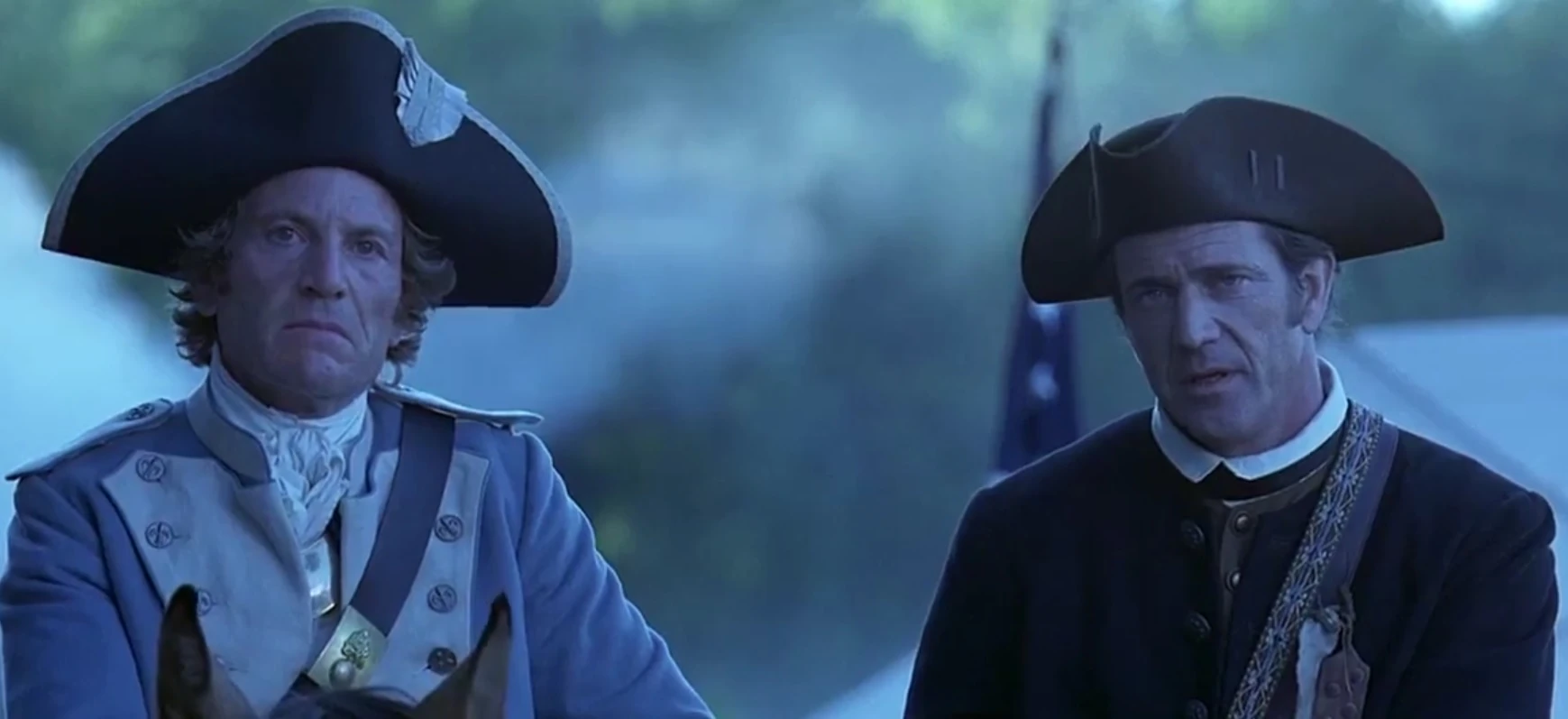 Martin decided to join Colonel Burwell’s forces, both to protect his family from the British and to support his son Gabriel, now a corporal in the Continental Army. Burwell told Martin that George Washington's army had been chased from Morristown by a British army of 12,000 troops, and that the Americans were a breath away from losing the war. With the American defeat at the Battle of Camden, there was no army between Charles Cornwallis' British army in the south and Washington's army in the north, and Burwell told Martin that the Americans had to hold out for at least six months, when 10,000 French Army troops would arrive in a fleet to assist the Americans. Until then, the Americans in the south faced 8,000 infantry and 600 cavalry. Martin was introduced to French Army officer Jean Villeneuve, who had been training the militia; Villeneuve held a grudge against Martin for his role in the massacre at Fort Wilderness, but they would later grow close. Martin was commissioned a Colonel by Burwell, and he was made responsible for recruiting a militia to keep Cornwallis in the south. Martin had Gabriel transferred to his command, and he sent him to recruit men in Harrisville, Pembroke, and Wakefield as he recruited men on the north side of the Santee River with Villeneuve; they would meet at the old Spanish mission at Black Swamp.