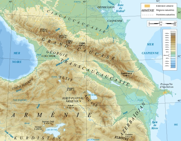 The Caucasus is a region on the border of Europe and Asia situated between the Black Sea to the west and the Caspian Sea to the east. The Caucasus is a mountainous region, with the Caucasus Mountains dividing the Russian Federation to the north from Georgia, Armenia, Azerbaijan, and Iran to the south, and the region is home to several indigenous groups of people such as Chechens, Kists, Georgians, Azeris, Armenians, Lezgins, Kabardians, Balkars, Circassians, and other (mostly Muslim) ethnic groups.