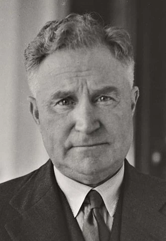 Earle Page was born in Grafton, New South Wales, Australia in 1880, and he graduated from the University of Sydney and became a successful surgeon. After service in World War I, he was elected to federal parliament with the endorsement of the Farmers' and Settlers' Association, whereupon he formed the Federal Country Party (now the National Party of Australia), together with ten other representatives of farming interests. Its leader from 1921, he triggered the replacement of Billy Hughes in 1923 and formed a coalition with Stanley Bruce, whose Deputy Prime Minister and Treasurer he was until 1929. He reorganized federal-state budget relations, so the federal govenrment gained control over public borrowing. In opposition from 1931, he rejoined the Cabinet when Joseph Lyons lost his absolute majority in 1934, though this time he was very much a junior partner in the coalition, with much less responsibility and freedom of action than he had enjoyed under Bruce. He became caretaker Prime Minister for nineteen days upon the sudden death of Lyons in 1939, while the United Australia Party chose a successor. A few months later he lost the leadership of his party, following a strong attack on the Prime Minister, Robert Menzies. He served as Australia's representative on the British war cabinet from 1941 to 1942 and, back in Australia, was member of the Advisory War Council from 1942 to 1945. As Minister of Health from 1949 to 1956, hiis main achievement was the introduction of a national health scheme in 1953.