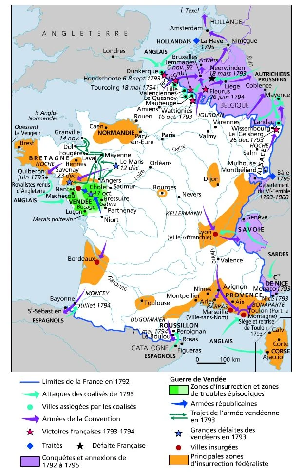 The Girondins had previously dominated the Legislative Assembly from October 1791 to September 1792, pushing France into the French Revolutionary Wars and advocating for the abolition of the monarchy. However, grain shortages, inflation, speculation, military setbacks against the Coalition, and the outbreak of the Royalist War in the Vendee in March 1793 drove many republicans towards the radical Jacobin group "the Mountain" and away from the Girondins. A May-June 1793 coup by the Jacobins against the moderate Girondins resulted in a final breach between the Girondins and the radical sans-culottes, and the National Convention voted for the suspension and house arrest of 29 Girondin politicians. The radicals proceeded to split up the land belonging to emigres and sell it to farmers, introduced a grain maximum, organized a revolutionary army, and consolidated power within the Committee of Public Safety and the Paris Commune.