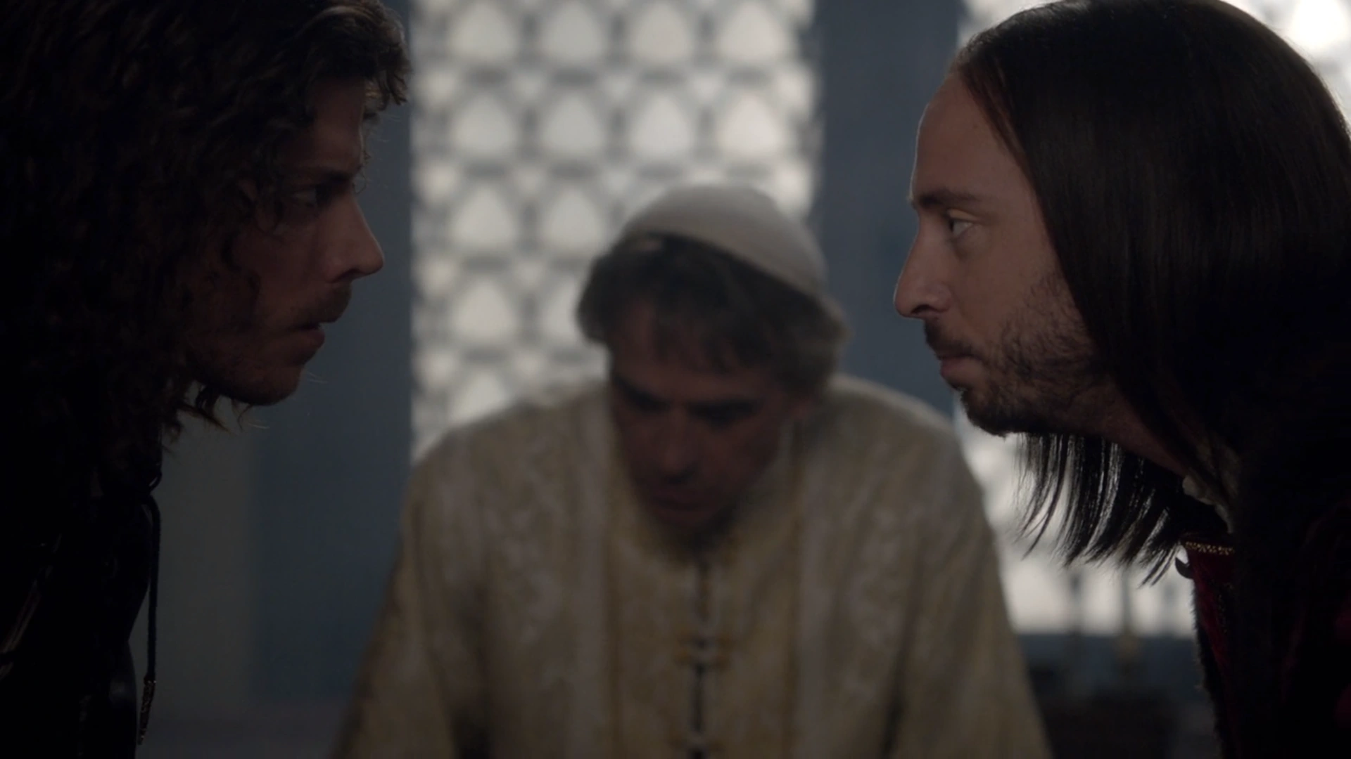 Ferdinand arguing with Borgia over the consummation of his nephew's marriage