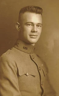 Francis Scott Bradford was born in Appleton, Wisconsin, United States in 1898, and he attended Lawrence College in Wisconsin and the National Academy of Design in New York. Bradford enlisted in the US Army soon after America joined World War I in 1917, and he became a Lieutenant in Company H, 39th Infantry Regiment, 41st Infantry Division, arriving in France in January 1918. He first saw action in September, and he went on to fight in the Meuse-Argonne Offensive, during which he was shot in the foot while leading his men in the face of heavy German resistance. After serving on occupation duty, he returned to the USA, where he studied art, won an art scholarship, and attended the American Academy in Rome. Bradford became a prominent artist, installing the inner mosaic at a shrine in Cambridge, England as a commemoration of US Air Force airmen flying from England during World War II. He died in 1961 at age 63.