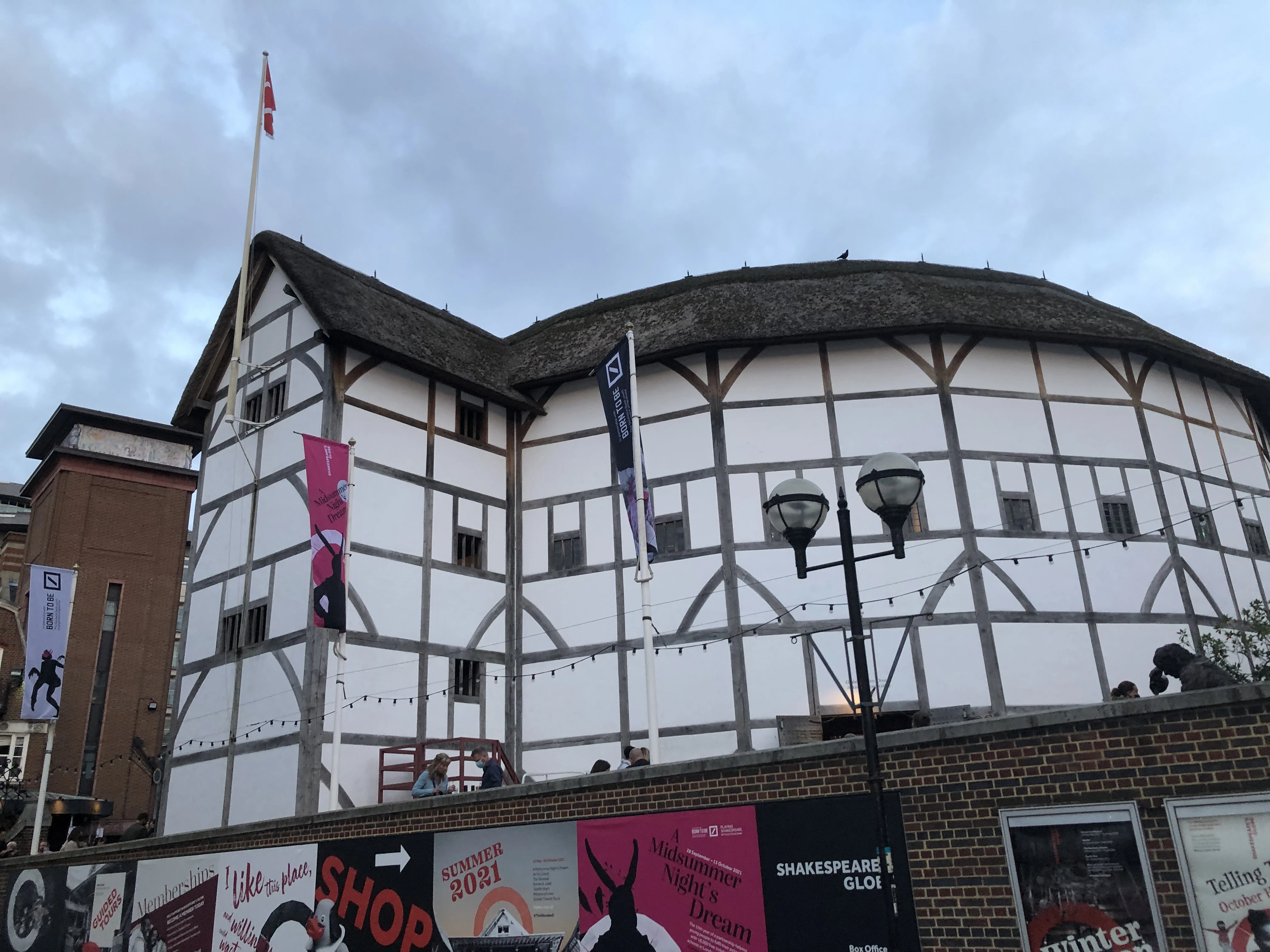 The Globe Theatre is a theater in London which was originally built in 1599 by William Shakespeare's playing company, the Lord Chamberlain's Men, on Maiden Lane (now Park Street) in Southwark. The theater burned down on 29 June 1613 after a theatrical cannon used for the play Henry VIII misfired during a performance and set fire to the wooden beams and thatching. The Globe was rebuilt the following year, but it was closed down by the Puritans in 1642 during the English Civil War and pulled down from 1644 to 1645, ostensibly to make room for tenements. In 1997, the theater was rebuilt to scale and reopened, although it could house only 1,400 spectators rather than the original theater's 3,000.