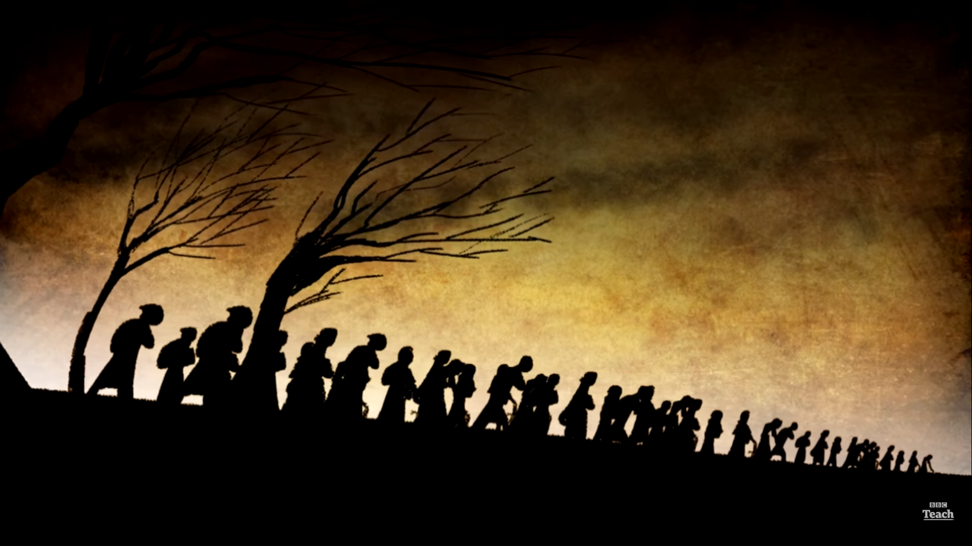 In the winter of 1069, William began a brutal campaign of submission which came to be known as the "Harrying of the North". William's army plundered and destroyed every village from the Humber to the Tees, burning down farmsteads, slaughtering the animals, destroying the crops, and plowing salt into the earth to prevent new crops from growing; the inhabitants who were not murdered were starved, and over 100,000 people died, while the survivors were reduced to eating cats and dogs or even humans. Several thousand refugees died during their journey south. By 1086, 60% of all holdings in Yorkshire were laid waste, 66% of all villages contained wasted manors, only 25% of the population and plough teams remained, and 80,000 oxen and 150,000 people were killed.