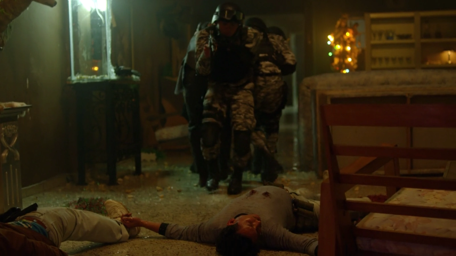 Escobar was phoned ahead by a traitor in the government forces who revealed that special forces were due to raid the prison while Sandoval was still inside. Escobar decided to flee, but he gave orders for Sandoval to be left alive, hoping for him to be killed by his own government, like Diana Turbay was in 1991. However, Colombian special forces arrived and informed General Ariza that his brigade was no longer in command of the operation, and Colombian troops used a breaching charge to destroy the lock on the chain link fence's gate. The Colombian snipers proceeded to fire at the cartel members and guards in their watchtowers and through the windows of the prison, and Colombian special forces soldiers on the ground threw grenades into the game room while breaching the building. Several cartel members and security guards were gunned down, while some of the other uniformed prison guards were arrested. Sandoval was rescued when his two captors were gunned down, and the special forces soldiers told him to keep on moving, no matter what happened. The siege ended that night, but Escobar managed to escape through a tunnel under the fortress, and he went on the run once more. Fear of a new war breaking out was high, but there would be no negotiations or surrender this time; Escobar would have to be killed.