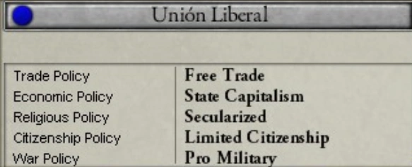 The Liberal Union of Spain was a conservative political party that existed in Spain from 1858 to 1874. The party was founded as a middle path between General Baldomero Espartero's radical liberal wing of the Progressive Party of Spain and the conservative liberals of the Moderate Party of Spain under General Ramon Maria Narvaez and Queen Mother Maria Christina of the Two Sicilies. The Liberal Union sought to preserve the monarchy while fighting against absolutism, and it favored centralized government and public investment. From 1858 to 1868, the Liberal Union controlled the government of Spain, and it merged into the Conservative Party of Spain in 1874.
