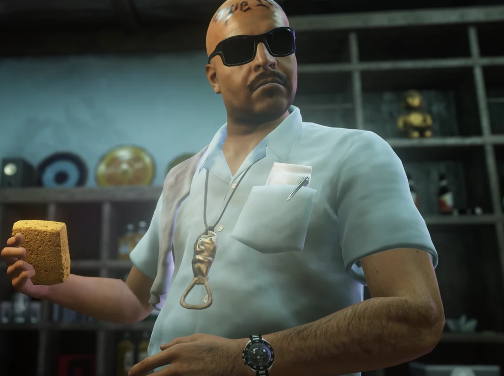 Macario Lira Negrón is the bartender in the Santa Fortuna's Village Bar and an associate of the Delgado Cartel. His bar's basement, is one of the entrances to Delgado Cartel's smuggling caves. When Rico Delgado was alive, he was charged by the latter to serve tattoo artist P-Power beer.