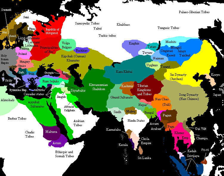 Map detailing Asia and Eastern Europe as of 1206