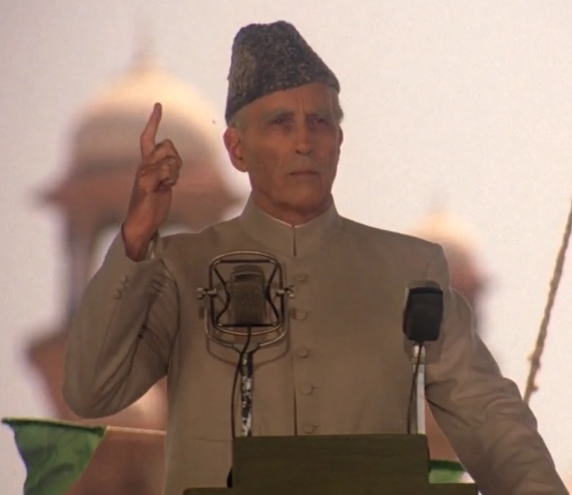 Jinnah holding up the declaration of independence, 1947