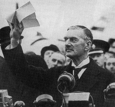 Neville waving the Munich Agreement in the air, 1938