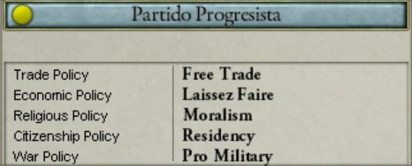 The Progressive Party of Spain was a liberal political party that existed in Spain from 1836 to 1874. The Partido Progresista rivalled the Moderate Party of Spain for control of the government for much of the 19th century, supporting free trade, a laissez faire economic policy, intolerant religious and social policies, and a militarist foreign policy. The Progressives were socially conservative and fiscally liberal, and they differed from the Moderates only on their trade and economic policies. Under Queen Isabella II of Spain, the liberals supported the government against the Carlist rebels during the First Carlist War, and the liberals were led to victory in battle by General Jose Ramon Rodil. The Progressive Party dissolved in 1874, and it was replaced by the Constitutional Party of Spain.