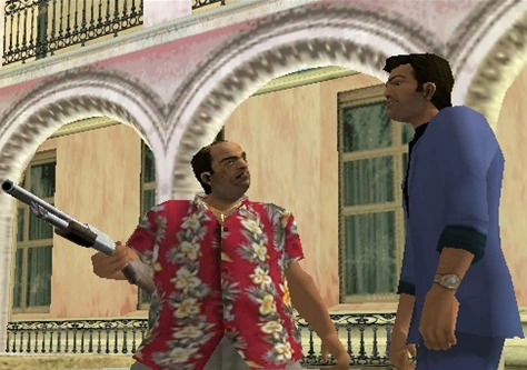 Diaz begging for mercy from Lance Vance and Tommy Vercetti
