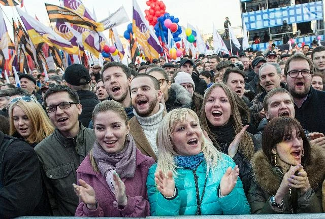 Russians celebrating the invasion of Crimea