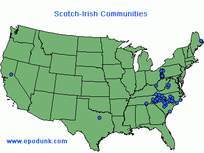 The Scots-Irish are a community of people in the United States descended from Scottish colonists in Ireland (known as Ulster Scots in the United Kingdom). 3,075,137 Americans identify as Scots-Irish, with 12% of Americans claiming Irish descent and 2% of Scots descent, with most of them being Presbyterian. Scots-Irish communities are mostly located in the South, with the Carolinas, Lancaster County in Pennsylvania, and Virginia having significant Scots-Irish populations.