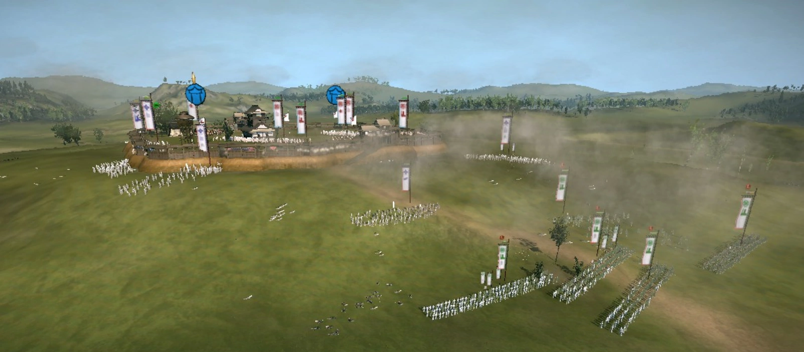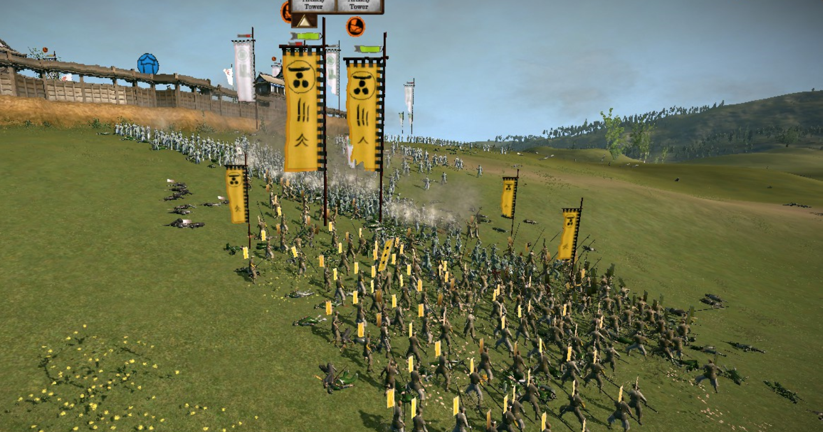 The besiegers decided to divide their army into four units, with the Tsuwano army being divided between a cavalry force commanded by the Tsuwano generals and a rifle regiment which advanced on the castle from another angle; the Fukuyama forces advanced on the castle from the other two angles. As the Hiroshima soldiers were faced with a much larger foe, they remained within the castle walls, forcing Takasugi to rush to the castle to rescue the defenders. As his army marched onto the battlefield and emerged from a small grove, Takasugi realized that he had caught the attention of Kamei Korekata and his bodyguards. Takasugi had his riflemen line up and unleash volleys of bullets at the cavalry, and his spearmen then charged forward and massacred the cavalry bodyguards.