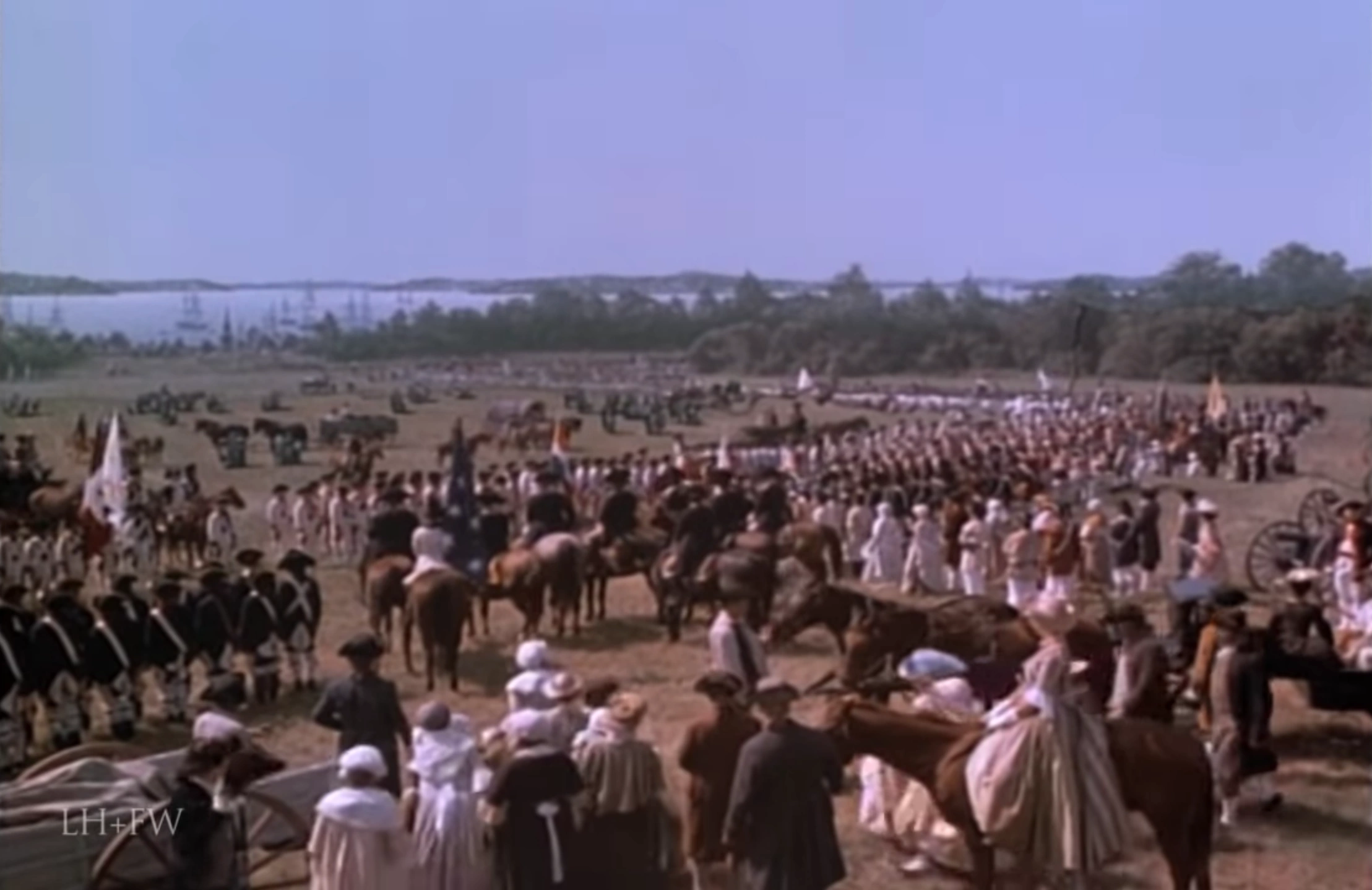 At around 3 PM on 19 October, the unhappy British garrison marched out of Yorktown. The allies lined the route along Hampton Road to a field - designated for the surrender ceremony. French troops lined the west side of the road, while the Americans stood on the east. The French were resplendent in their white coats - trimmed with colored facings according to their regiments - marking a stark contrast to their Patriot counterparts, who were ragged and motley, but who stood no less proud.