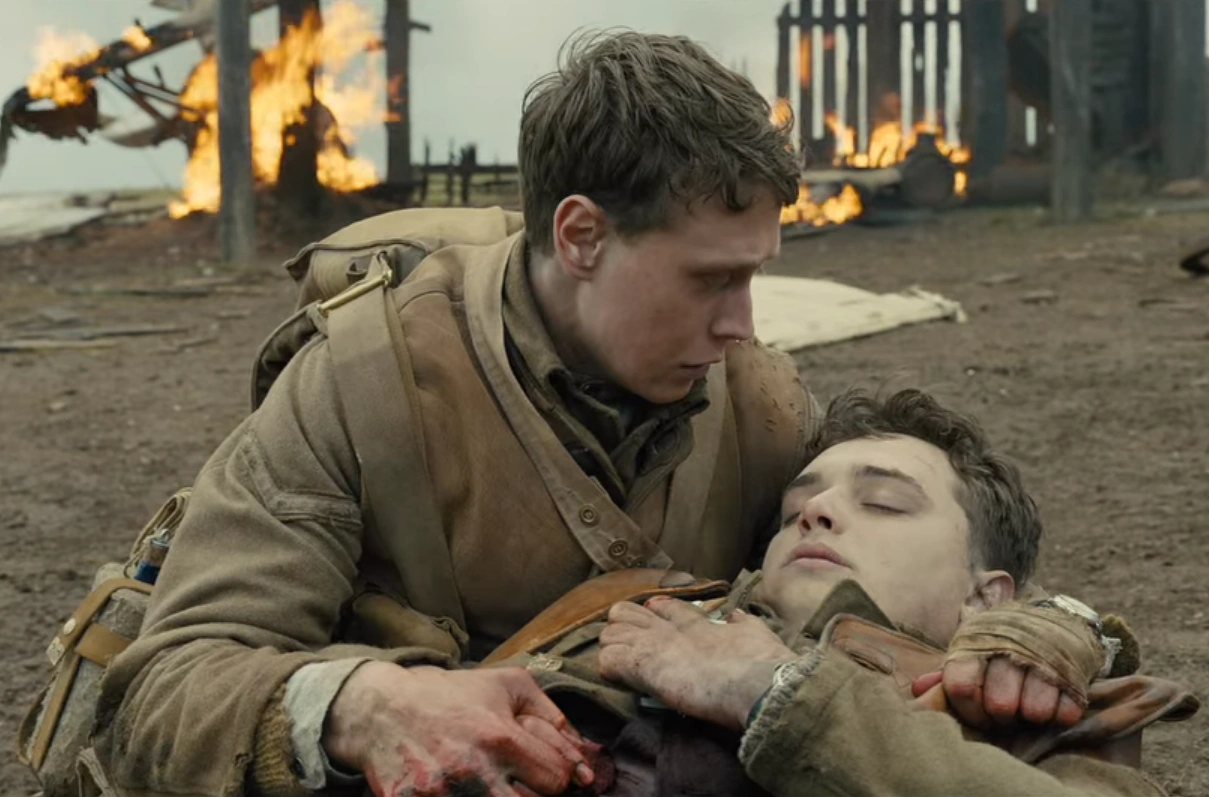 When Wildner was shot down and crashed into the farmhouse, Blake and Schofield rescued the German pilot from his burning cockpit, and, as Schofield exited the farmhouse to investigate the aftermath of the dogfight, a paranoid Wildner struggled with Blake and fatally stabbed him in the abdomen. Schofield shot the pilot dead with two bullets from his Enfield rifle, and he cradled his friend Blake in his arms; when Blake asked if he would die, Schofield lamented that he would.