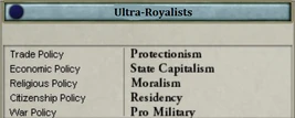 The Ultra-Royalists were a reactionary faction of French politics under the Bourbon Restoration government of King Louis XVIII of France and King Charles X of France from 1815 to 1830. The Ultra-Royalists represented the returned emigre nobility who were opposed to King Louis XVIII's moderate policies, and the Ultras won the 1820 Chamber of Deputies elections. They reduced voting rights and placed restrictions on civil liberties and freedom of the press, and their leader, the Count of Artois, was crowned as King Charles X in 1824. The Ultras fought against the bourgeoisie and attempted to clamp down on political freedom after the liberals and moderate monarchists won the elections of 1827. In 1830, the Ultra-Royalists were overthrown by the bourgeoisie in the July Revolution, and the liberal Orleanists took over. The Ultra-Royalists would join the Legitimists in fighting to restore the Bourbons to the throne.