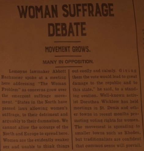 A Saint Denis Times Tribune article on the woman suffrage debate, 1899