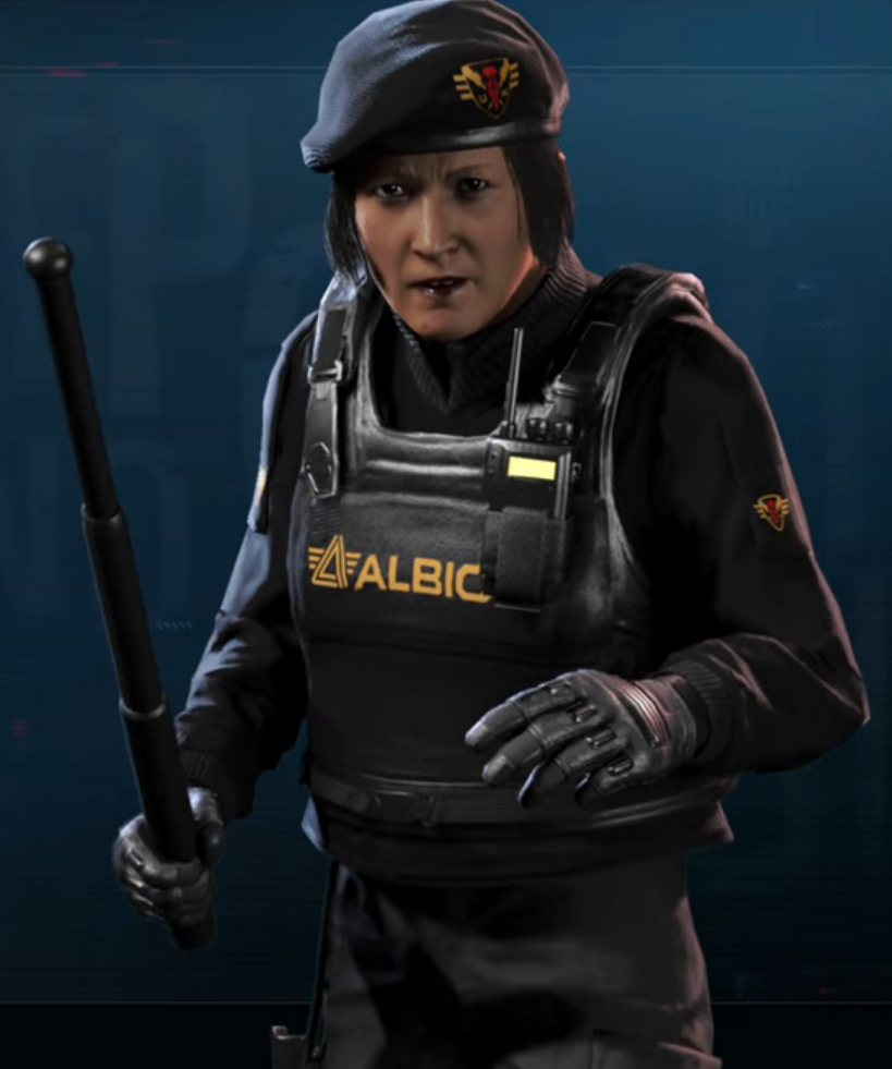 Xia Huang (born 1973) was a British Albion contractor who lived in Soho, London during the 2029s. An SAS-trained former police officer, she was stunned in a shootout with DedSec operative Lorence Johnson in Chinatown in 2029.